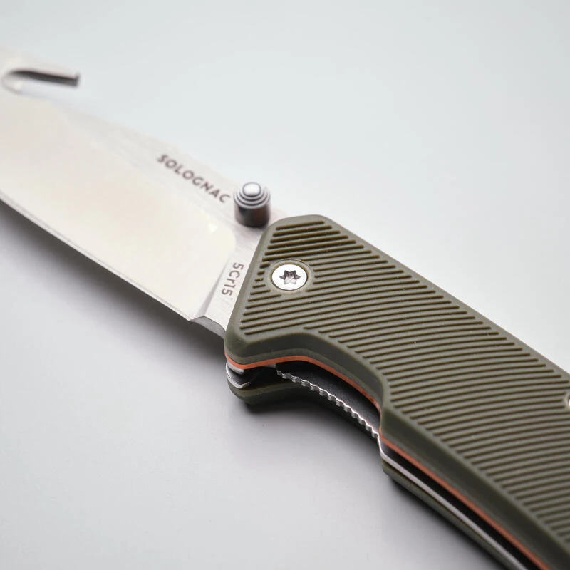 Notre équipe de conception a imaginé ce couteau spécifiquement pour le traitement de la venaison après tir, à la chasse. Et l’avoir toujours dans la poche.Avoir les bons outils au bon moment est cruccial. Un couteau avec crochet éventreur, émouture spéciale viande et un excellent grip, sont les qualités nécessaires pour le compagnon idéal à la chasse